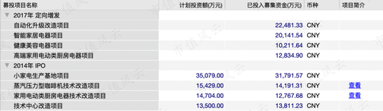 还有新宝股份,无论是2014年IPO还是2017年定增,也都是用于生产和技术升级,大概募集了17亿多。