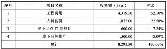 募投项目中,北鼎股份打算在线下新建或升级20家体验店、80家核心店、200家A级门店,总共花费8291万,其中大量资金花在租赁和装修的工程费用上。