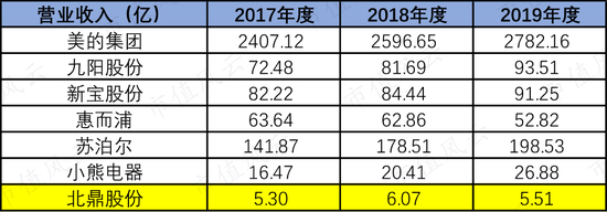 北鼎股份主要产品生产量是120万台左右(没披露总生产量),而小熊电器2019年生产量是3547万台,新宝股份是1.06亿台,产量差距不是一个量级。