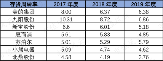 2017年-2019年北鼎股份的存货周转率为4.58、4.19、3.76,呈不断下降的趋势,而且是可比上市公司中最低的,说明北鼎股份去库存的难度比其他公司大。