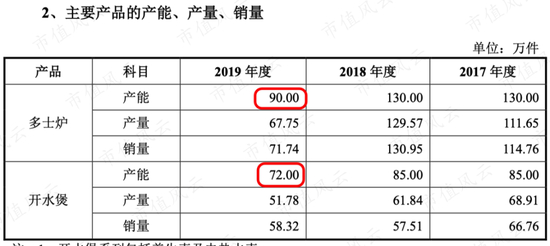 2019年的原有产能是多士炉90万件、开水煲72万件,这次募投项目拟增加的产能也只60万件。