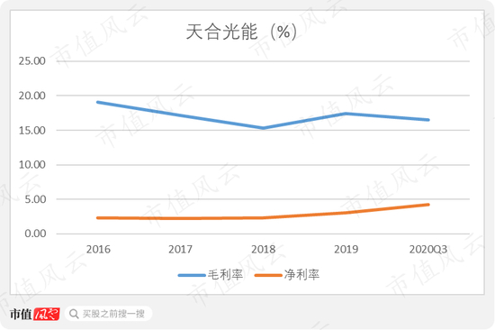 从变化趋势来看,2016-2019年期间,天合光能的毛利率是略有下滑的。