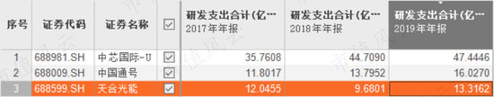 这家公司就是天合光能(688599.SH),2017-2019年的研发费用率分别是0.77%、0.88%、1.28%,稳居最后一名。