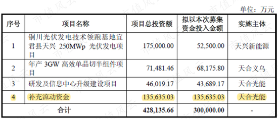 最后,风云君发现,天合光能财务费用率的改善还得益于一个方面:将近一半的募集资金被用来回血了。