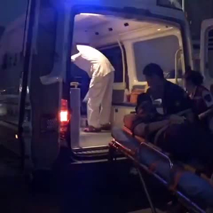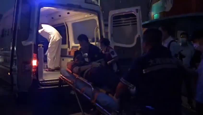 大连圣亚副董事长毛崴被担架抬上救护车