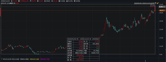 股价较年内低点暴涨250%