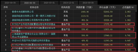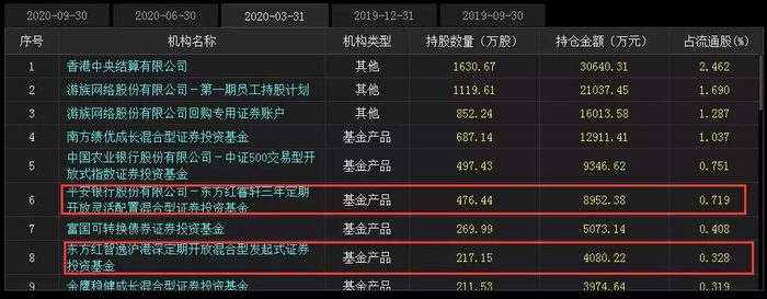 黑天鹅事件的不期而至,不仅散户躺枪,且也让相对看好游族网络的机构投资者遭受到当头一棒。从上市公司季报来看,由私募大佬冯柳所掌舵的高毅邻山一号远望基金已经连续两个季度重仓该股,而明星公募东方红更是连续三个季度有产品在十大流通股股东名单中闪现。