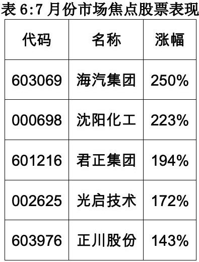 7月份,沪指大幅上涨10.9%,创业板指再次大幅上涨超14%。期间,单月有33只个股涨幅超过100%,有156只个股涨幅超过50%,有899只个股涨幅超过20%。