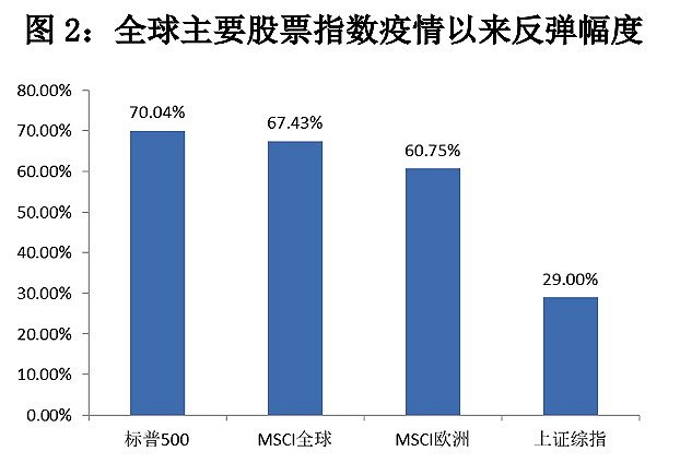 截至12月29日收盘,标普500、MSCI全球指数、MSCI欧洲、上证综指自疫情最低点分别反弹上涨70%、67%、60.7%、29%。而全年中国有可能是世界主要经济体中唯一实现正增长的经济体。