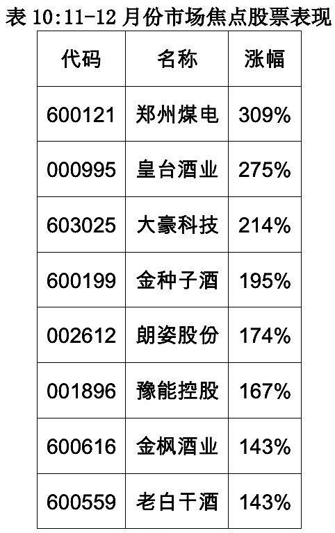 11月和12月应该放在一起回顾,11月份的大牛股很多都持续到了12月底,这两个月,白酒和新能源车为主线的逼空行情,把指数也带动了一个新的高度。截至12月30日收盘,深成指创近五年半新高,创业板指也盘中突破2900点。顺周期和机构抱团的酒类板块,持续性上涨完全超出了市场预期。