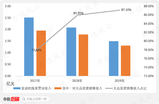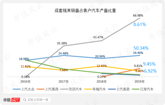 发动机线束的销售收入几乎全部来自大众投资,2019年达到87.10%,接近90%,单一客户依赖严重。