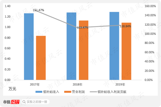 过去三年,沪光股份每年收到的铜补收入都超过当年营业利润,即如果没有铜补收入,沪光股份妥妥年年亏损!