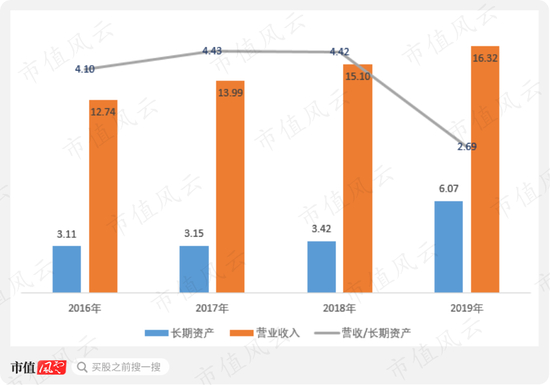 在毛利率被锁定的情况下,沪光股份的经营策略就是用更少的资产投入挣更多的钱。2019年之前,每年营业收入是长期资产的四倍还多,且还略有上升。
