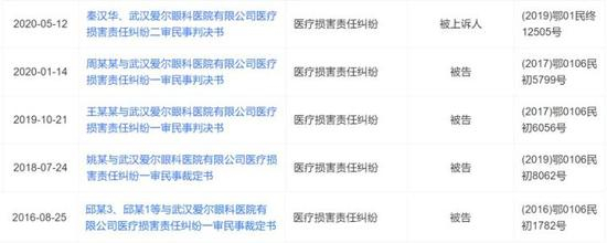 事实上,除武汉外,爱尔眼科在黄冈、太原、玉溪等地的子公司医院也涉及多起医疗损害诉讼纠纷。