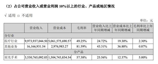 更为夸张的是,在2019年,爱尔眼科在医疗行业的毛利率接近50%。而其他业务的毛利率更达到81.59%。其中营收占比最高的屈光手术,毛利率更高达57.38%。