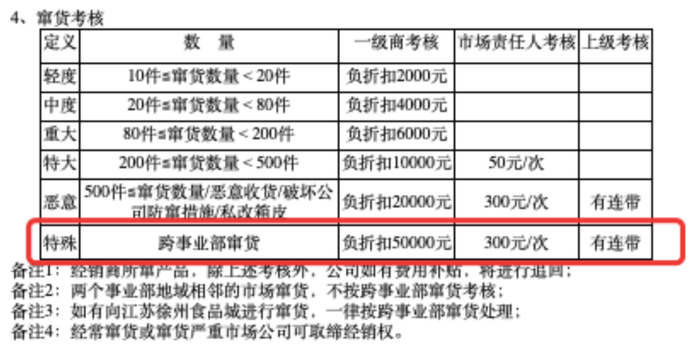 据悉,养元公司虽也实施了针对2020年窜货处理的规则,比如,跨事业部窜货,一级经销商罚款5万元、市场责任人一次罚300元;窜货市场如在三天内未去收货,将按每件30元对被窜市场进行费用补贴。
