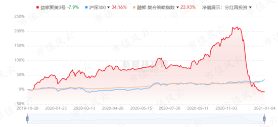 这两家基金显然没有躲掉随即而来的暴跌,以益家聚美3号为例,该基金从2019年10月开始运作,短短一年时间收益率就高达212%,让各路高手汗颜。