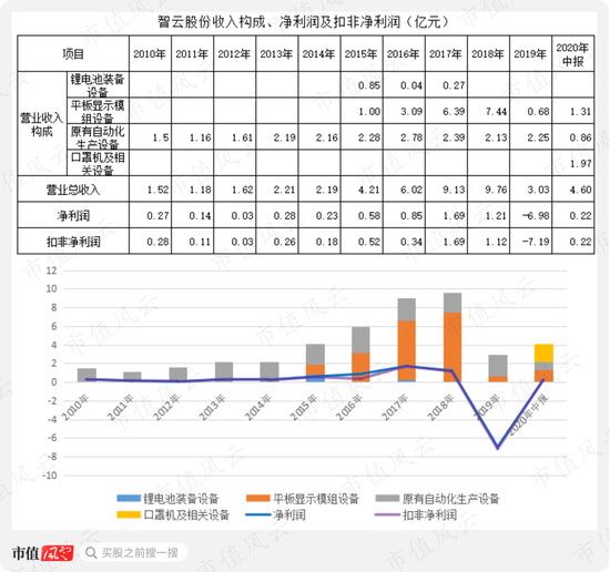 今年上半年因为疫情原因,由口罩机及相关设备贡献了1.97亿元的营收。而其锂电池装备业务在2018年后就不再贡献营收。