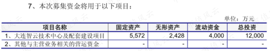 2010年上市,IPO募集资金2.9亿元,而资金投向的内容跟某互联网巨头的招股说明书一样随意,其中主要的资金投向是大连智云技术中心及配套建设,1.2亿元。