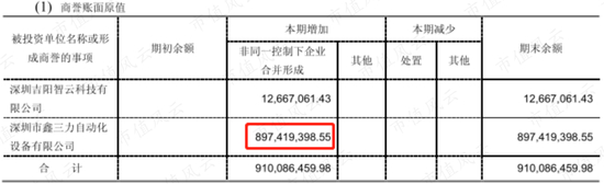 换言之,鑫三力被收购时的净资产只有3200多万元,该笔交易给上市公司给上市公司8.97亿元的商誉。