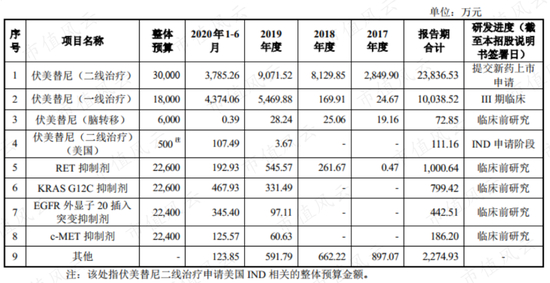 虽然目前艾力斯主要产品管线拥有5个主要在研药品的10项在研项目,但过去3.88亿元的研发投入中,3.41亿元用于伏美替尼相关管线研发,占比87.87%,如下表: