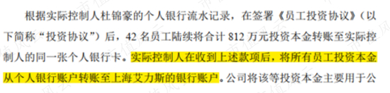 面对该等资金是否被挪作他用的问询,艾力斯表示上述资金一进入杜老板个人账户就打到了公司账上,未挪作他用,主要用于公司日常经营活动。