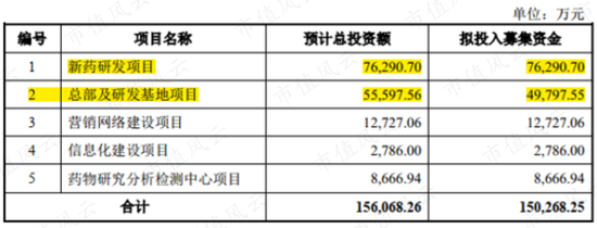 据发行报告,艾力斯共募资资金20.46亿元人民币,扣除发行费后净募资19.33亿元。其中7.63亿元用于新药研发,4.98亿元用于总部及研发基地项目。
