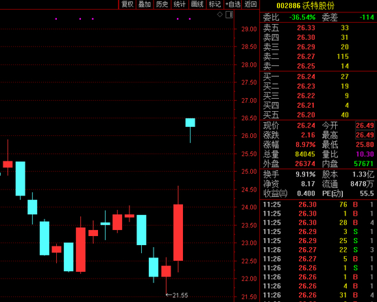 然而,就在今日盘前,公司突发公告,上述提议已取消。不过,方案虽“哑火”,市场仍火爆。早盘市场资金热情高涨,沃特股份直接高开涨停,其后一度被撬开后又快速回封,最终早盘大涨8.97%,收于26.24元/股。