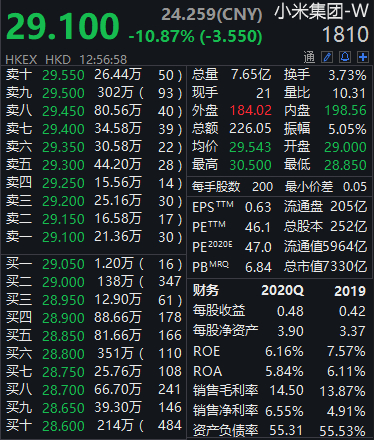 受此消息影响,小米集团早盘大跌,截至午间收盘,该股跌超10%,报19.1港元。