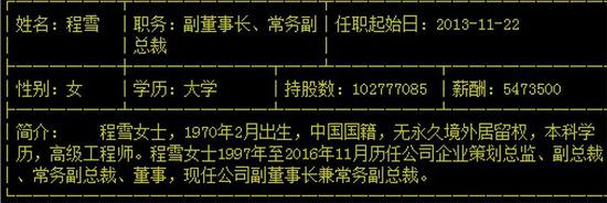 公开资料显示,程雪就职于海天味业,1997年至2010年历任公司的策划总监、副总裁、董事,现任副董事长兼常务副总裁。