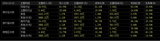 日月股份核心业务为精密铸件制造,包括风电铸件和塑料机械铸件,其中风电铸件业务是公司的营收核心,2019年年报显示,风电行业收入占日月股份总收入从前一年的76.58%提升至81.95%。