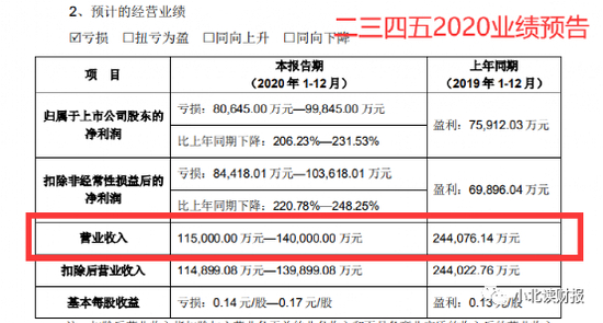 从公司业绩来看,2014-2018年二三四五营业收入快速增长,但是近两年业绩开始走下坡路。2019年公司营收24个亿,同比下滑35%,2020年根据业绩预告,收入最高还将下滑40%。所以说,今年公司业绩不行的锅不能推给商誉减值,爆雷只是为了掩盖一下持续亏损的业绩罢了。