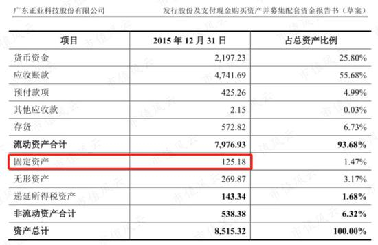 上市公司在并购方案中披露截止2015年底鹏煜威的固定资产只有125.18万元。