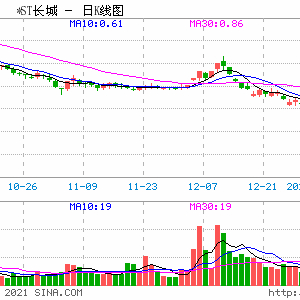 事实上,自*ST长城2020年12月31日跌破1元线后,股价一路下行,再也没有站上1元关口。据东方财富数据统计,2020年12月31日-2021年1月27日,*ST长城已连续19个交易日每日股票收盘价均低于1元。