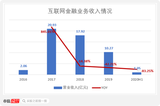 2017年~2020年6月,互联网信息服务业务和互联网金融业务构成了二三四五98%~99%的营业收入。
