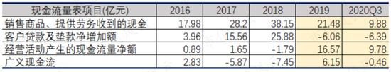 同时,二三四五继续投入资金为各种金融工具“加码”,导致2020年前三季度的广义现金流由正转负。