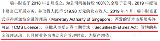 在获得新加坡资本市场服务牌照后,瑞丰财富就开始通过管理基金等方式为客户提供资产管理服务。