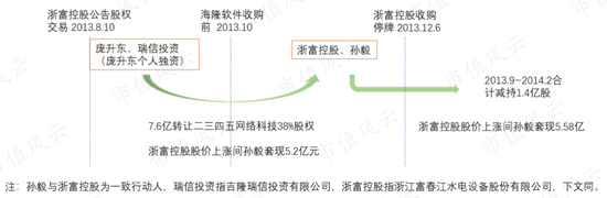 若再加上孙毅在二三四五完成借壳海隆软件前后减持浙富控股的获益,2013年8月~2020年11月期间,浙富控股与孙毅合计通过减持套现30.81亿元。