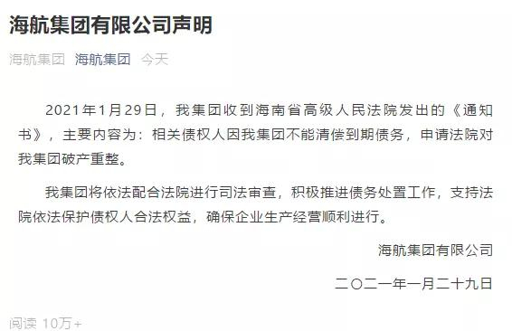 刚刚,海航集团申请破产重整!影响有多大?6问6答