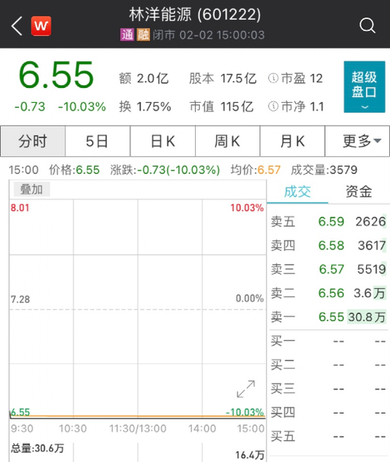 林祥能源董事长被“留置”:股价应声跌停 可转债盘中跌超20%