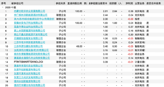 数据显示,截至2020年6月30日 ,林洋能源参控股公司共有140余家,其中主营业务多涉及光伏电站、投资、智能电表、制造业等。