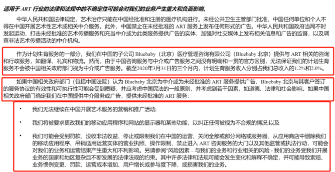 风云资本界(微信公号:sxkcg666)发现,蓝城兄弟在招股书中也表示,“追求为人父母是我们社区许多成员的基本需要和生活目标。我们通过Bluedbaby(蓝色宝贝)平台为中国客户提供计划生育服务,与我们在中国以外的辅助生殖技术或ART(人类辅助生殖技术)服务合作伙伴合作,全程陪伴客户”。