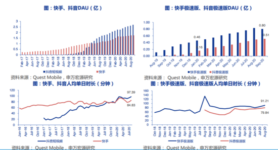 截止到2020年三季度,快手的月活用户达到4.82亿人,平均日活用户的使用时长接近85分钟。