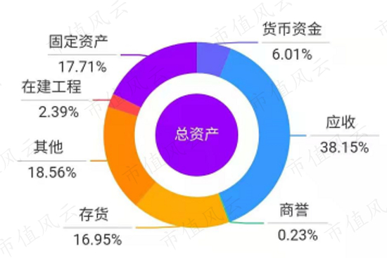 裕同科技的资产占比前三名是应收票据及应收账款(28.28%)、固定资产(26.78%)和货币资金(15.54%),合计占比达70.6%。