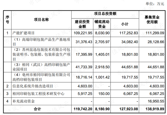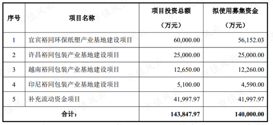 此外,裕同科技通过IPO共募资14.7亿,用于以下项目: