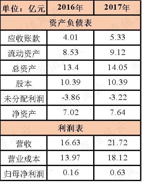 3、架桥合兴接管这些工厂后,2016年和2017年的营收分别为16.63亿和21.72亿,同比增长30.61%;归母净利润分别为0.16亿和0.63亿,成功实现盈利。