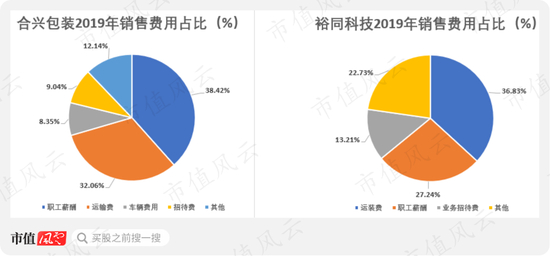 以2019年为例,裕同科技和合兴包装的运输费用达1.74亿和1.56亿,占比达36.83%和32.06%,长期在30%以上。
