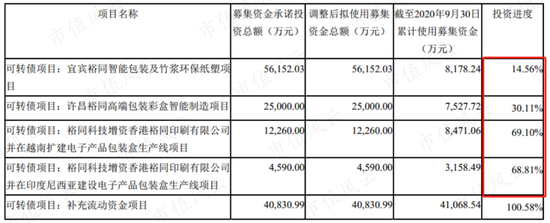 截止2020年三季报,越南和印尼项目的投资进度均接近7成,而宜宾的环保纸塑项目进展明显较慢,投资进度仅为14.56%。