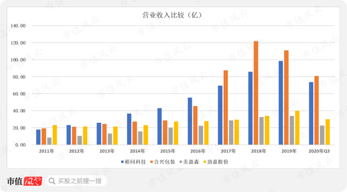 而裕同科技的表现更为稳健,每年均能实现增长,从收入规模和增速综合看,表现在4家公司中最好。