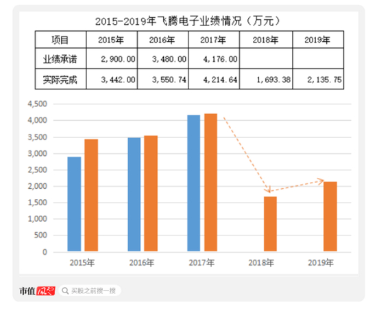 过了业绩承诺期后,2018年飞腾电子业绩随即大幅下滑,净利润较2017年下降60%,为1693万元。2019年净利润虽有所增加,但依然只相当于2017年业绩承诺期的一半。